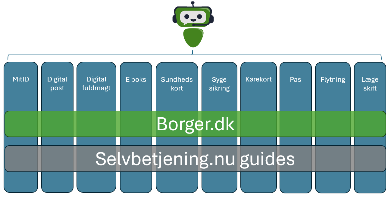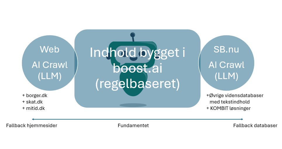 Når borgers spørgsmål er udenfor disse 60 kategorier, så gennemsøger chatbotten kommunernes hjemmesider og selvbetjening.nu guides for at finde det korrekte svar i de verificerede datakilder.
