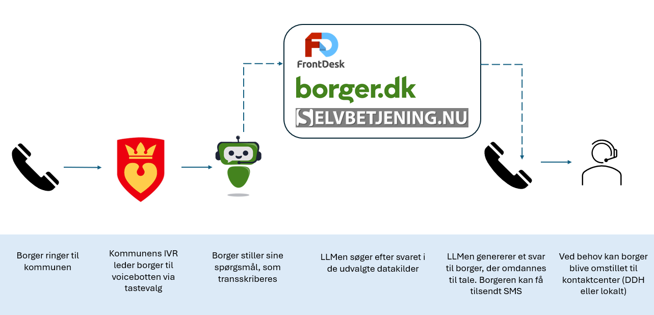 En borger kan komme i kontakt med voicebotten på 2 forskellige måder.